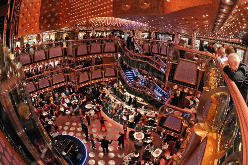 The two main dining rooms, which seat about 1,866 passengers, offer at least six different appetizers, six different entrees including the popular broiled lobster tail and a variety of decadent desserts such as Carnival’s signature Chocolate Melting Cake.